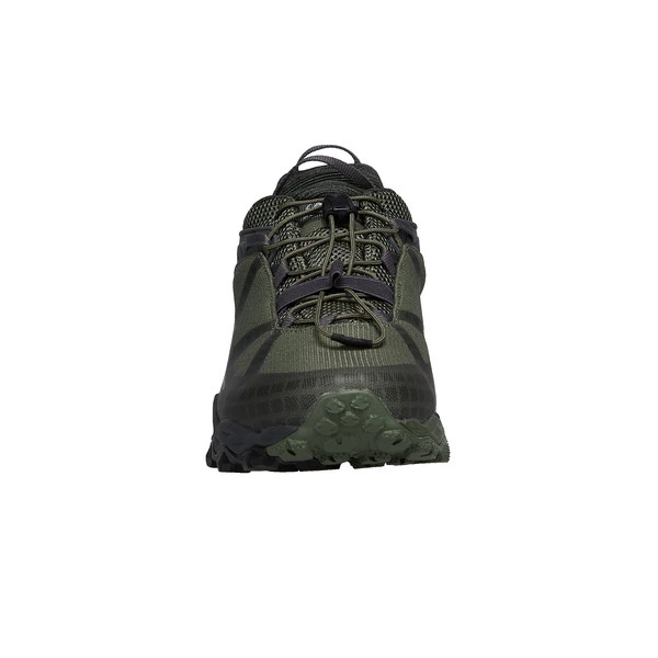 Der Schuh besteht vollständig aus synthetischen Materialien. Diese machen den sportlichen Wanderschuh besonders leicht und flexibel. Er ist somit optimal für Speed Hiking und Ultralight Hiking geeignet. Um den Schuh dennoch robust zu machen, ist der Fersenbereich zusätzlich verstärkt. Außerdem kommen Aufprägungen aus TPU zum Einsatz, die dem Wanderschuh im Zehenbereich zusätzliche Abriebfestigkeit und Stabilität verleihen.