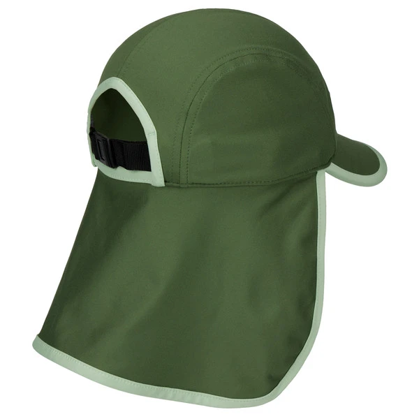 Während der Schirm Schatten fürs Gesicht spendet, schützt der lang geschnittene Latz Hals, Nacken und Ohren vor brennender Sonne. Das Hauptmaterial leitet Feuchtigkeit schnell von der Haut weg nach außen und trocknet im Handumdrehen. Das eingearbeitete Schweißband ist mit einer speziellen Technologie ausgestattet, die durch Schweiß aktiviert wird und dann eine kühlende Wirkung hat. Dadurch trägt sich das Cap auch beim wilden Toben auf dem Camping- oder Spielplatz sehr angenehm.