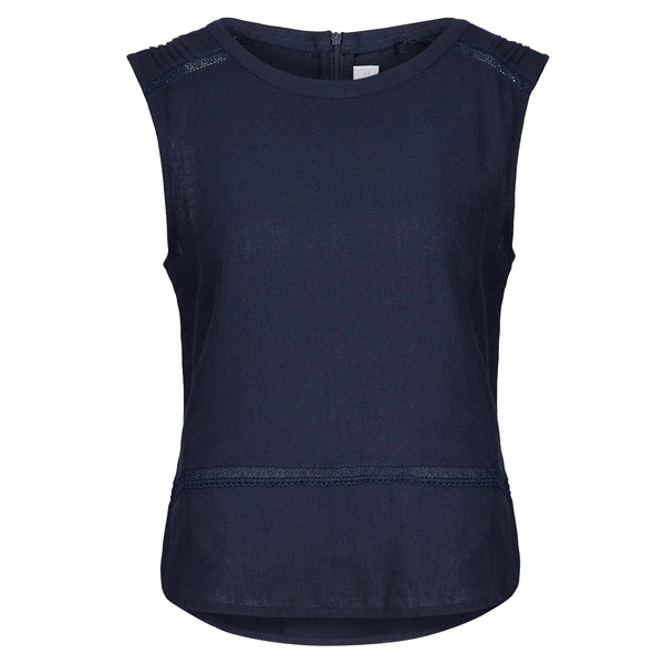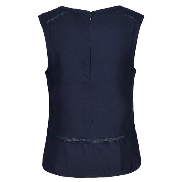 Durch die lockere Passform und den kürzeren Schnitt kommt ordentlich Luft an deine Haut. Auf dem Rücken ist für eine einfache Handhabung ein dezenter Reißverschluss angebracht. Der stark abgerundete Saum, welcher mit seitlichen Schlitzen versehen ist, verleiht der ärmellosen Bluse eine harmonische Linie. Die Biesen an den Schultern und die verspielten Lochstickereien gibt dem Ganzen eine gewisse Leichtigkeit.