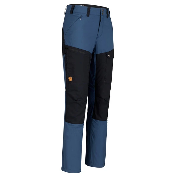 Am Gesäß, an den Oberschenkeln und an den Knien schützt das etwas robustere G-1000 Air Stretch-Material vor Abrieb. Das Material ist das dünnste und leichteste Material aus Fjällrävens G-1000-Serie. Es ist besonders locker gewebt, wodurch es besonders atmungsaktiv ist. Um den Luft- und Feuchtigkeitsaustausch nicht einzuschränken, wurde die Hose nicht gewachst. Hierdurch ist sie allerdings auch nicht wasserabweisend.