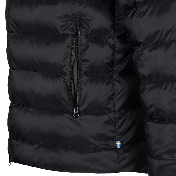 Hier freut sich die Umwelt, denn dank komplett recycelten Materialien werden Ressourcen gespart. Dazu ist die Jacke tierfrei und mit einer PFC-freien Imprägnierung versehen, die das robuste Nylon-Außenmaterial wasserabweisend gegenüber Niesel und Schneeflocken macht. Alle Details sind so designt, dass sie auch unterwegs einfach auszutauschen und zu reparieren sind.
