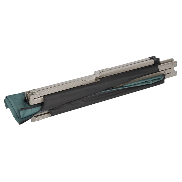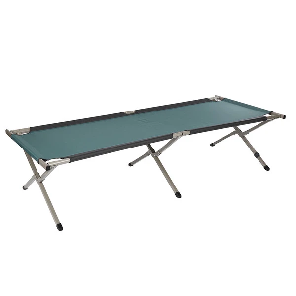 Hier bettest du dich richtig. Das Feldbett kannst du dank Hebelwirkung schnell und einfach aufbauen. Dank der Hebel-Mechanik ist zudem eine ideale Spannung des Bezuges bequem zu erreichen.