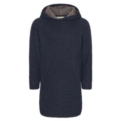 Das Kalajoki Hooded Dress fällt in die Kategorie Strickfleece; die äußere Struktur unterscheidet sich aber optisch von normalem Strickfleece und hat durch den Woll-Anteil einen etwas festeren Griff.