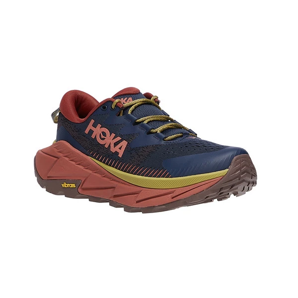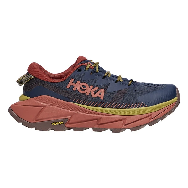 Hervorstechen tut beim Skyline aber etwas anderes: und zwar die teilweise aus nachwachsenden Rohstoffen bestehenden Materialien der Sohlenkonstruktion. So wird die Einlegesohle beispielsweise auf Sojabasis und die Pebax-Sohlenplatte auf Rizinusölbasis hergestellt. Auch bei der Zwischensohle, die zu 30% aus Zuckerrohr besteht, wurde auf biobasierte Materialien zurückgegriffen. Als Laufsohle kommt eine besonders griffige Vibram XS-Trek Gummi-Profilsohle zurückgegriffen.