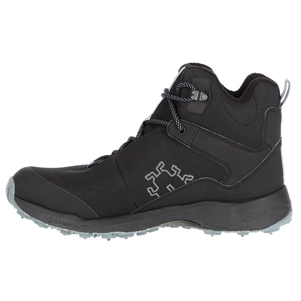 Außen robustes Ripstop-Material, innen wärmendes Futter. Und unter dem Fuß die Technologie für viel Halt: Die Hartmetall-Spikes krallen sich in Schnee, Eis und andere weichere Untergründe wie nasse Trails oder Wurzeln.