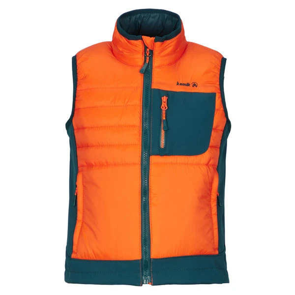 Durch die warme, gesteppte Kunstfaser-Wattierung mit strapazierfähigem Außenmaterial im Brustbereich ist genau dort für wohlige Wärme gesorgt, wo es am wichtigsten ist. Ein dünneres, feuchtigkeitsleitendes Polyester-Gewebe bietet deinen kleinen Energiebündeln ein ausgewogenes Klima und punktet mit besonders schnelltrocknender Eigenschaft. Ein starker Funktionsmix für Outdoor-Einsätze und Alltag – solo und im Lagenprinzip.