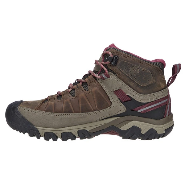 Ein besonders großes Plus, speziell bei anstrengenden Unternehmungen: Der robuste Stiefel ist ein echtes Fliegengewicht! Das Oberleder ist wasserfest und oberhalb der Sohle rundum mit einem leichten Schutzrand versehen. Eine wasserdichte, atmungsaktive Membran hält deine Füße zuverlässig trocken. Im Zehenbereich werden Schuh und Fuß durch die Keen-typische Schutzkappe vor Beschädigungen und Verletzungen durch Geröll oder Äste geschützt. Gepolsterte Lederverstärkungen am Schaft schützen zusätzlich deinen Knöchel.
