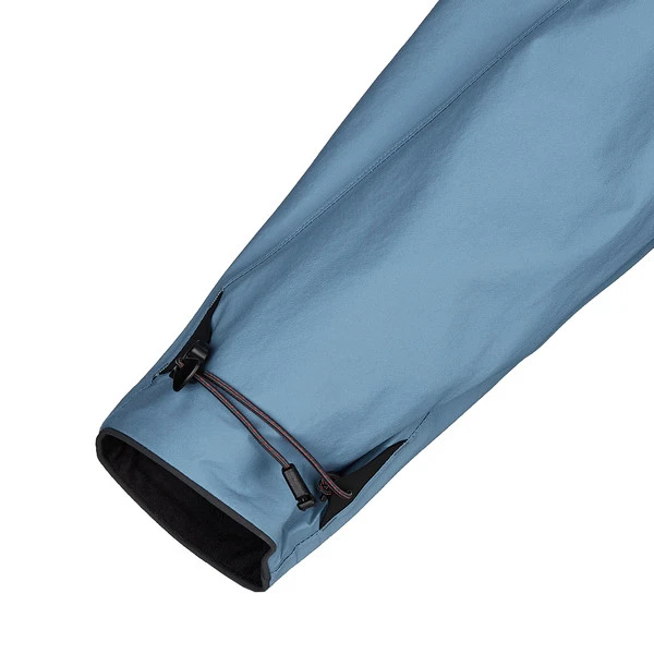 Der starke Wetterschutz wird erhöht durch die Kapuze, die noch dazu über eine Volumen-Regulierung verfügt. Auch die Windschutzleiste über dem Front-RV, der unterlegt mit weichem Fleece ist, hindert kalte Luft nach innen zu dringen. Zudem sind Ärmelabschlüsse und Saum in der Weite einstellbar, wodurch Wind und Nässe zusätzlich draußen gehalten werden.