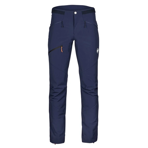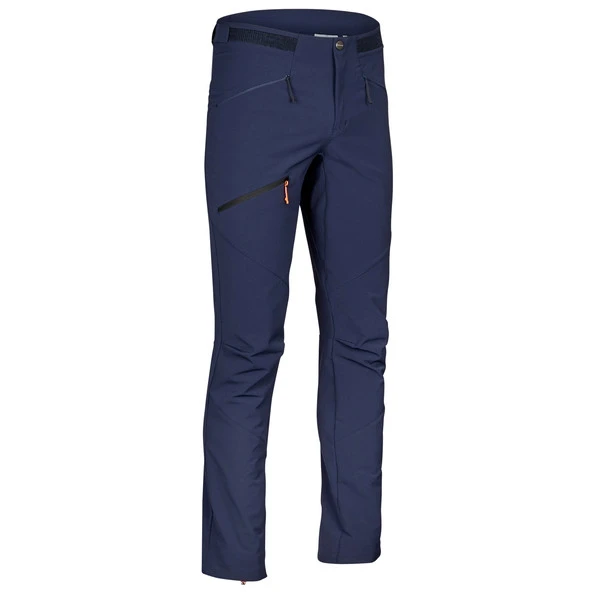Die Bewegungsfreundlichkeit der Hose wird zusätzlich durch die vorgeformten Kniepartien optimiert. Auch die athletische Passform gibt dir ein gutes Gefühl beim Klettern. Blieben noch die zwei Haken: Diese befinden sich jeweils an den Beinabschlüssen. Sie lassen sich am Schuh fixieren, sodass das Hosenbein nicht nach oben rutschen kann. Noch dazu kannst du die Beinabschlüsse per Kordelzug anpassen. Regulierbar ist auch der Hosenbund, dessen Weite sich mit einem Kletterverschluss einstellen lässt. Und in den beiden RV-Einschubtaschen sowie der RV-Oberschenkeltasche finden Karabiner oder Energieriegel einen Platz.