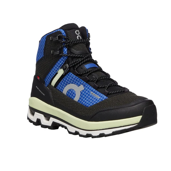 Als Obermaterial kommt, wie von On nicht anders gewohnt, ausschließlich synthetisches Material zum Einsatz. Das Material ist trotzdem robust genug, um auch in verblocktem, felsigen Terrain mühelos zurechtzukommen, auch weil es durch abriebfeste Verstärkungen aus TPU im Zehen-, Seiten- und Fersenbereich unterstützt wird. Vor allem im Zehen- und Fersenbereich reichen diese bis weit auf das Obermaterial. Der hochwertige Stiefel ist außerdem auch mit der hauseigenen On-Membran ausgestattet. Diese macht den Stiefel komplett und vor allem zuverlässig anhaltend wasserdicht. Da sie ebenfalls atmungsaktiv ist, sorgt sie außerdem für ein trockenes Trageklima.
