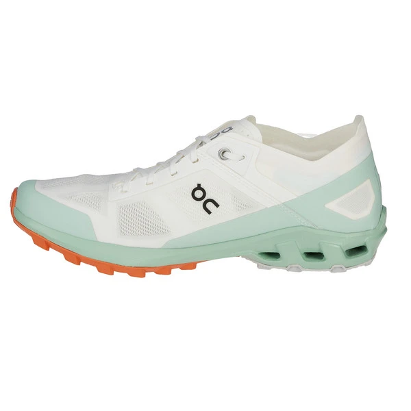 Im Fersenbereich sorgen 3D-Applikationen aus TPU für den nötigen Fersenhalt im Schuh, auch bei wirklich steilen Passagen, egal ob es dabei bergauf oder bergab geht. Der Bereich der Schuhzunge besteht aus gepolstertem, luftigen Mesh-Gewebe. Die Sohle des Cloudventure Peak, ist in der für On typischen, stollenartigen Machart gefertigt. So kann auch auf losen Untergründen bestmöglicher Halt gewährleistet werden.
