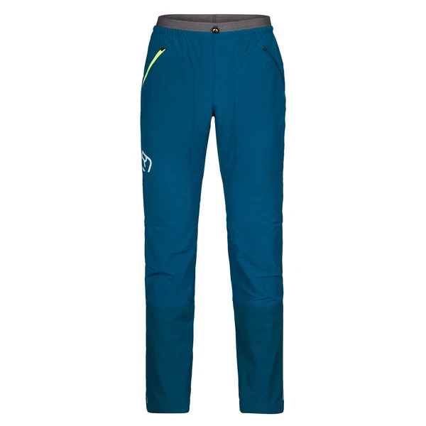 Der weiche Bund der Tourenhose kann mit einem elastischen Kordelzug in der Weite justiert werden. So kombiniert die Berrino gekonnt ihren athletischen, ergonomischen Schnitt mit dem bequemen Tragegefühl einer leichten Trainingshose. Kniepartien sind vorgeformt, die Beine eher schlank geschnitten.