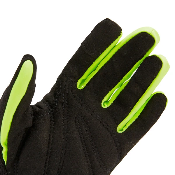 Komfortabler Fahrradhandschuh für Kinder, mit angenehmer Polsterung, wasserabweisendem Obermaterial und weichem Futter. Das Synthetik-Suede an der Innenhand gibt Grip am Lenker.