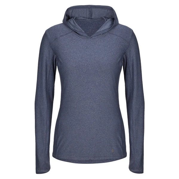 Dank der guten Portion Elasthan im Gewebe kannst du dich auch im anspruchsvollen Gelänge frei bewegen. Das angenehm leichte, dünne Material mit glatter Haptik sorgt für unbeschwerten Tragekomfort. Die hübsche Melange-Optik, die leicht taillierte Passform und die figurschmeichelnde Rückennaht verleihen dem Hoodie eine besonders schöne optische Note.