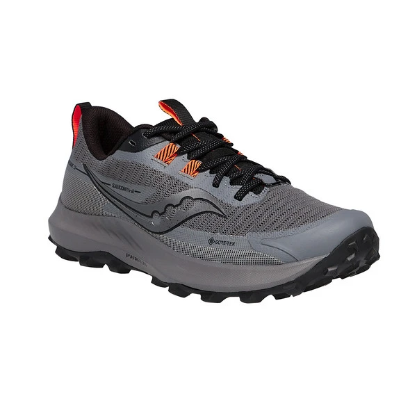 Trailrunning bei schlechtem Wetter? Mit dem Peregrine 13 GTX von Saucony kein Problem. Dabei besticht der Schuh aber auch durch sein geringes Gewicht. Ideal für eine richtig hohes Pace!