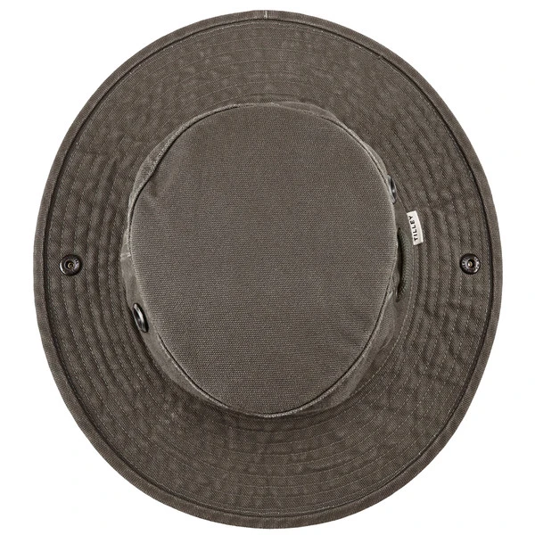 Die leichten Waschungseffekte verleihen dem Hut eine besonders interessante, rustikale Optik. Durch das abtrennbare Kinnband wird der Hut auch bei windigem Wetter nicht vom Kopf geweht. Sollte er dennoch beim Paddeln, Angeln oder Bootfahren mal ins Wasser fallen, ist das auch nicht weiter schlimm, denn in der Hutkrone befindet sich eine formstabile Krone aus weichem Polyethylen-Schaum, wodurch der Hut schwimmfähig ist.