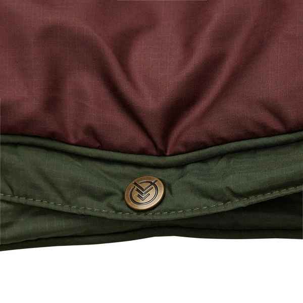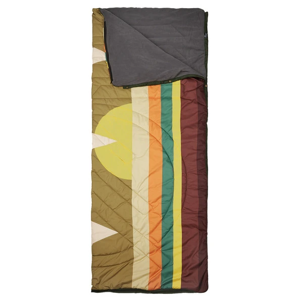 Warme Outdoordecke aus recyceltem Polyester, die du dank seitlicher Druckknöpfe zum Schlafsack und Kopfkissen umbauen oder auch als Mantel tragen kannst.