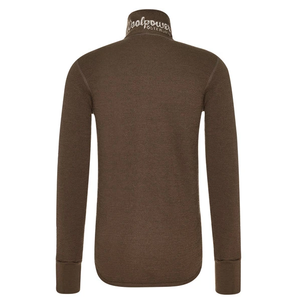 - Hoher, doppelt gelegter Stehkragen mit Woolpower-Schriftzug hinten
