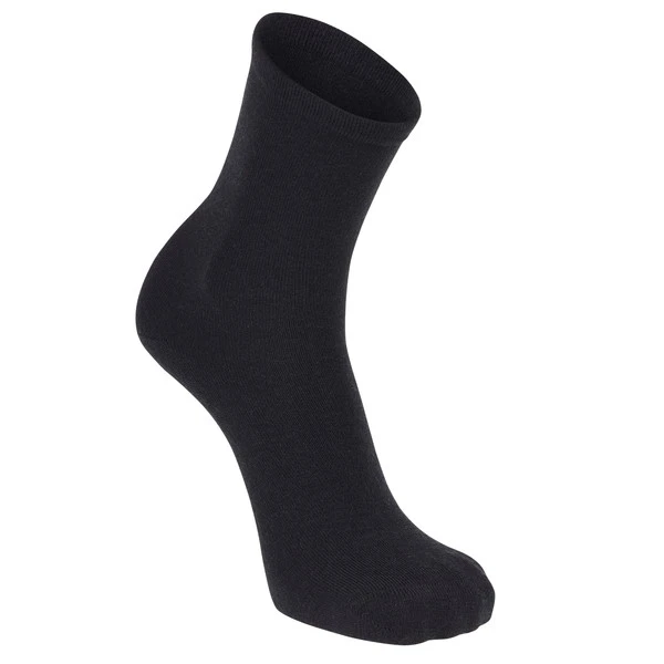 Die glatt gestrickten, leichten Socken haben einen hohen Anteil an Merinowolle. Wolle wirkt temperaturausgleichend hat den den Vorteil, die Geruchsbildung der Socke deutlich zu verzögern. Das spart häufiges Waschen. Außerdem kann Wolle bis zu 30 Prozent des Eigengewichts an Feuchtigkeit absorbieren, ohne sich feucht anzufühlen.