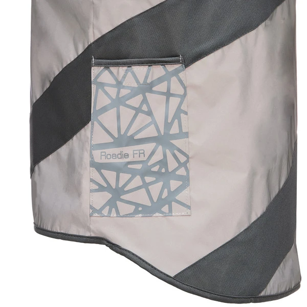 Vollständig reflektierende Weste mit grauen Streifen: wer nicht auf Signal-Gelb steht, aber mindestens genauso gut gesehen werden möchte, fährt (im Sinne des Wortes) mit der Roadie FR richtig gut!